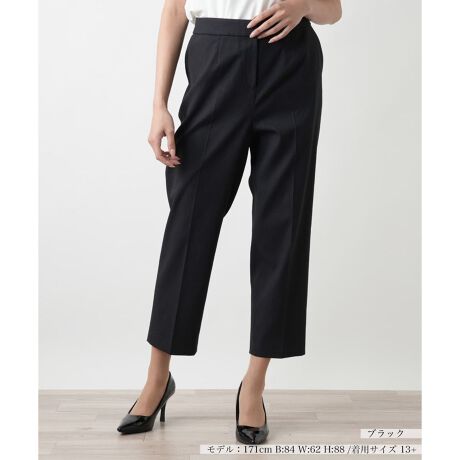 すっきりとした足元を演出する、シャープなシルエットのテーパードパンツ。ポリエステルにコットンや麻をブレンドしたさらりとした肌ざわりの生地は、適度なストレッチ性に加え、はっ水加工を施しており機能性も備えています。センタープレスを効かせて端正な印象に仕上げ、後ろ裾にスリットを加えてさりげない抜け感をプラス。ベーシックなデザインで、オンにもオフにも対応できる汎用性に優れた一本です。