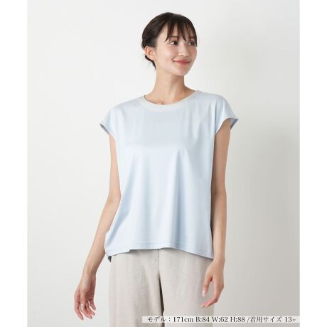 ネックラインにあしらった繊細な刺繍が、さりげない華やかさを添えるプルオーバー。肩先までを自然に覆うフレンチスリーブは、気になる腕まわりをカバーしつつ、涼しげな印象を与えてくれます。裾サイドにはループボタンを施し、さりげないアクセントに。伸縮性のあるやや薄手の生地は、肌離れも良く快適な着心地です。ベーシックなシルエットでありながら、細部にこだわったディテールが上品さを演出。パンツともスカートとも合わせやすく、日常使いからオフィスシーンまで幅広く活躍する一枚です。