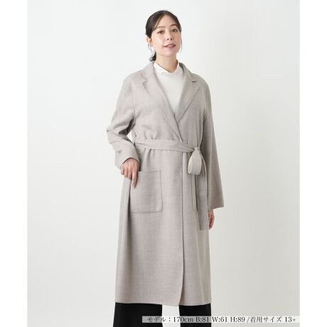世界的なテキスタイルメーカー「ロロ・ピアーナ」のイタリア製生地を使用した、品格漂うリバーシブルのロングコート。厳選された毛にナイロンをブレンドすることで、しなやかな風合いと微光沢が生まれ、優雅なドレープを描きます。軽やかな一重仕立ては、肩肘張らずお召しいただける点も魅力。裏地がないため、羽織るたびに素材本来の心地よさを感じていただけます。洗練されたシルエットと、シックな色合いが、日々の装いに奥行きと品格をもたらすでしょう。付属のベルトでウエストマークすれば、また異なる表情をお楽しみいただけるのも嬉しいポイントです。