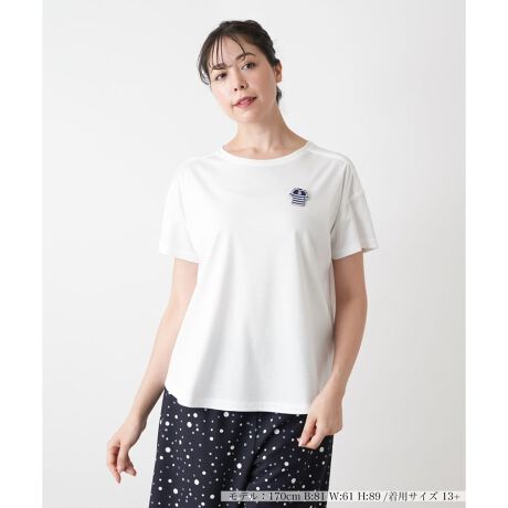 【ウォッシャブル】ブローチ付きクルーネックカットソー