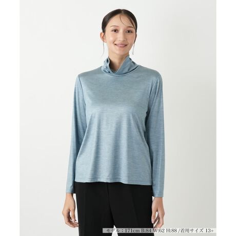 上質な素材が生み出す、ほのかな光沢感が美しいタートルネックカットソーです。首元を優しく包み込むデザインは、肌寒くなる季節に暖かさをもたらします。長袖ですので、一枚で洗練されたスタイルを楽しむのはもちろん、ジャケットやカーディガン、ワンピースのインナーとしても幅広く活躍します。柔らかな肌触りで、一日中快適にお過ごしいただけます。着回し力に優れ、オフィスから日常使いまで様々なシーンに馴染みます。ご自宅で手洗いができるウォッシャブル仕様のため、日々のお手入れも簡単で、長くご愛用いただけます。