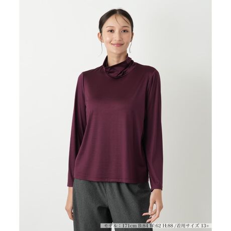 上質な素材が生み出す、ほのかな光沢感が美しいタートルネックカットソーです。首元を優しく包み込むデザインは、肌寒くなる季節に暖かさをもたらします。長袖ですので、一枚で洗練されたスタイルを楽しむのはもちろん、ジャケットやカーディガン、ワンピースのインナーとしても幅広く活躍します。柔らかな肌触りで、一日中快適にお過ごしいただけます。着回し力に優れ、オフィスから日常使いまで様々なシーンに馴染みます。ご自宅で手洗いができるウォッシャブル仕様のため、日々のお手入れも簡単で、長くご愛用いただけます。