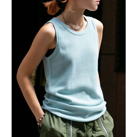 【JE.MORGAN/ジェイイーモーガン】ワッフルラウンドタンクトップ