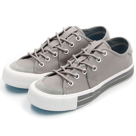 2025AWの新作『SANDWICH-LO STD1』は、初期に製作したキャンバス&スエードのモデルをアップデートさせました。インソールを貼り付けのものからPUインジェクションのカップインソールに改良。カップインソールが足全体をサポートし、長時間の歩行でも快適な履き心地を実現しました。SANDWICHとはアッパーのパターンが分かれて構成されており、足全体を包み込む様にホールドしてくれるのが特徴のRFWを代表するモデル。包み込むイメージからサンドイッチという名前が付けられております。アッパー両サイドの羽根が2枚のパーツに分かれている事で、履き口も開きやすく着脱もスムーズです。またソールに配置した2本の太い黒いラインもポイントです。アウトソールはRFWのブランドカラーのシアンブルー(水色)になります。アッパーには柔らかいグレーのキャンバス素材が使用されており、通気性が良く、快適な履き心地を実現しています。履き口の部分は開きやすく、着脱もスムーズ。グレーはどんなコーディネートにも合わせやすく、日常使いはもちろん、旅行やカジュアルな外出にもぴったりです。