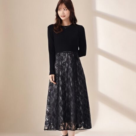 2025秋冬新作 ラメレースニットドッキングワンピース