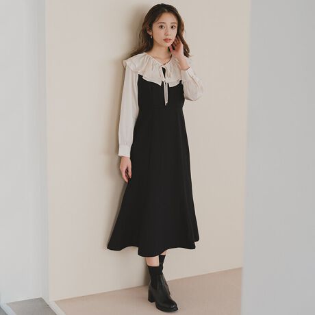 2025秋冬新作 フリルカラーマーメイドワンピース