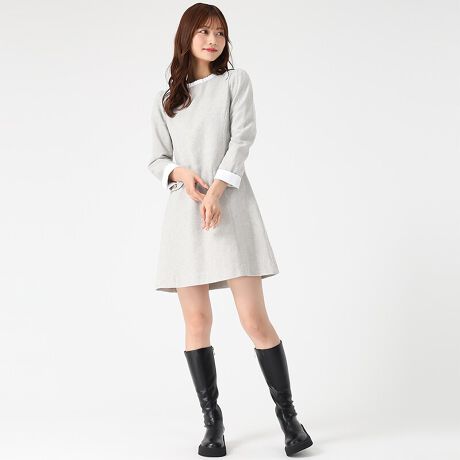 シンプルな中に配色のディテールが映えるサックミニワンピース。程よい丈感で脚をすらりと見せつつ、アウターを羽織ってもバランス良くまとまります。ショートブーツで大人カジュアルに、パンプスで上品にと幅広く活躍します。