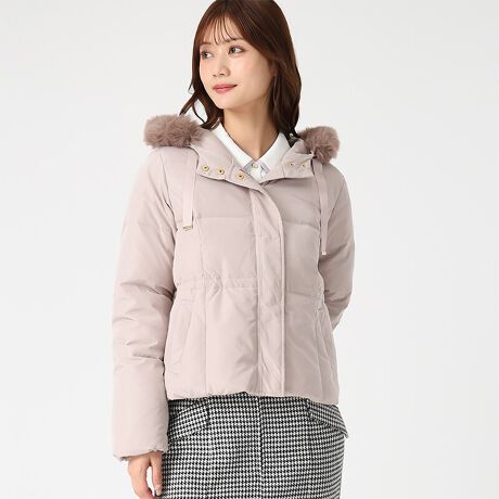 上品リボンと調整ウエストで着映える万能アウター。025秋冬新作 グログランリボンフードショートダウン