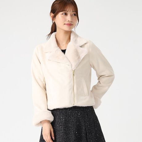 2025秋冬新作 ファー付きスエードライダースジャケット
