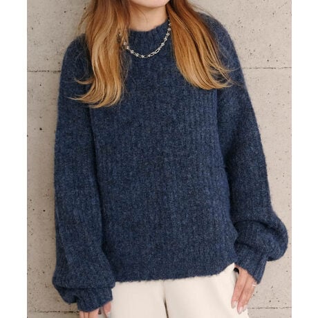 ふんわりとしたアルパカ風の質感が魅力のニットトップス。