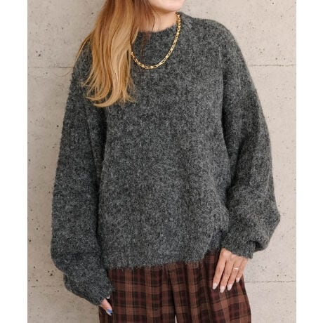 ふんわりとしたアルパカ風の質感が魅力のニットトップス。