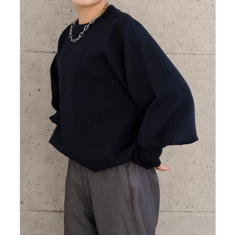 袖にふんわりと空気を含んだような立体感を持たせつつ、手首部分は長めのリブでキュッと引き締め、全体のシルエットをきれいに見せてくれます。