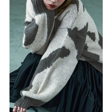 Fashion Letter ファッションレター インパクト抜群、これにデニム合わせだけでコーデが決まるマーブル柄ニットプルオーバー。