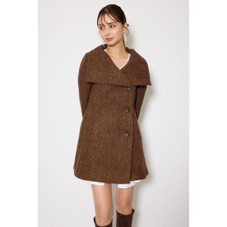 【rienda定番シリーズの大人気シンデレララインミニコート】■ポイントその名の通り、シンデレラの様に美しいシルエットのウールコート。riendaの長い歴史の中で培ってきた女性らしさを引き立てる立体的なパターンメイキングを最大限に生かしたシルエットがポイント。■ディテールオーバーカラーで大人っぽい印象を持たせつつ飽きの来ない、長く着られるデザインです。どんな方でもその人らしく着用できて、なりたい自分になれる、そんなコートに仕上がりました。■スタイリングワンピースの上からサラッと簡単に羽織ってコートの襟部分を開けてBIGカラー風にしても◎全部ボタンを閉めてクールに決めても様になります。トップス×ボトムスのコーデの時には、コート襟部分のボタンを閉めて裾のボタンを2□3個開けてボトムスをちらりと見せる着方もお勧めです。■生地透け感:なし裏 地:あり伸縮性:なし光沢感:なし厚 さ:ややあり■商品のお気に入り登録お気に入りアイテムの再入荷・在庫1点などの通知を受け取ることができます。[注意事項]※画像の商品はサンプルです。実際の商品と仕様、加工が若干異なる場合があります。※画像の商品は光の照射や角度、お使いのモニター環境により、実物と色味が異なる場合がございます。※着用、お取り扱いの際は、アテンションタグをご確認ください。