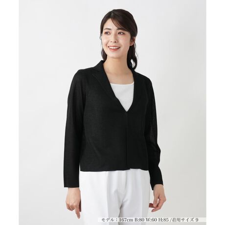 レーヨンにポリエステルをバランスよくブレンドし、やさしいタッチで甘く編み上げたニットジャケット。ほんのり光沢感を感じさせるソフトな風合いが、装いに品の良さを添えてくれます。顔まわりに印象をもたらすラペルは、きちんと感と女性らしさを両立。すっきりと開いたVネックラインが軽やかな抜け感を演出します。フロントはホック仕様で無駄のないミニマルなルックスに。ブラウスやカットソーにさっと羽織って、オンオフ問わず活躍するアイテムです。