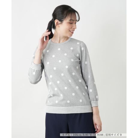 大粒のドットが愛らしくも品よく映えるクルーネックニット。シンプルなデザインに遊び心を添え、コーディネートに程よいアクセントをプラス。
