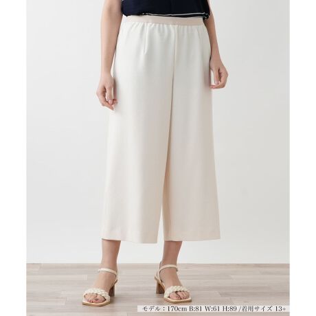 表面に凹凸感のある独特なニュアンスの生地で仕立てたガウチョパンツ。リラックス感漂うワイドシルエットながら程よい落ち感があり、大人の上品な佇まいを演出。ウエストは総ゴム仕様で心地よくフィットし、ストレッチ性のある生地が快適なはき心地をサポート。動きやすさも兼ね備えているので、デイリーからお出かけまで幅広く活躍します。トップスをタックインすれば、脚長見せのスタイルアップ効果も期待できそうです。