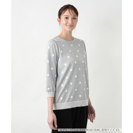 大粒のドットが愛らしくも品よく映えるクルーネックニット。シンプルなデザインに遊び心を添え、コーディネートに程よいアクセントをプラス。