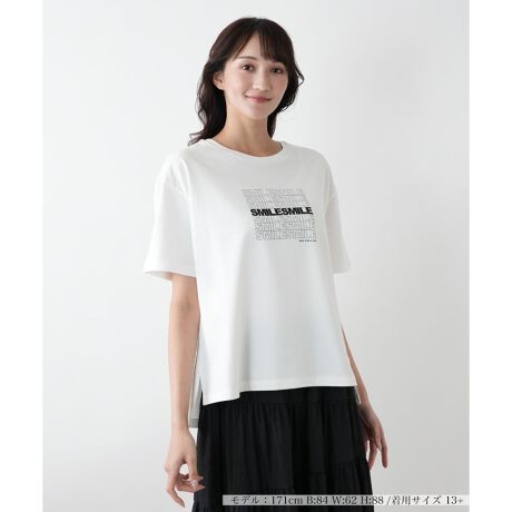 フロントに大胆に配した「SMILE」のロゴプリントが遊び心を感じさせるTシャツ。肌にやさしくなじむソフトなコットン生地を使用し、着心地のよさにもこだわりました。裾にはさりげなく前後差をつけ、サイドスリットで動きにニュアンスをプラス。程よいゆとりのあるリラクシーなシルエットで着こなしやすさ抜群。ワイドパンツでカジュアルにまとめても、フェミニンなスカートを合わせてもバランスよく仕上がります。