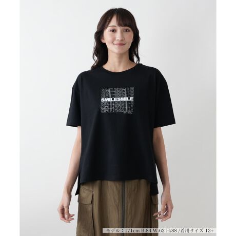 フロントに大胆に配した「SMILE」のロゴプリントが遊び心を感じさせるTシャツ。肌にやさしくなじむソフトなコットン生地を使用し、着心地のよさにもこだわりました。裾にはさりげなく前後差をつけ、サイドスリットで動きにニュアンスをプラス。程よいゆとりのあるリラクシーなシルエットで着こなしやすさ抜群。ワイドパンツでカジュアルにまとめても、フェミニンなスカートを合わせてもバランスよく仕上がります。