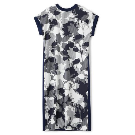 LANVIN COLLECTIONオリジナルのローズプリントのスムース生地と程よい厚みが魅力のミラノリブニットを前後でドッキングしたワンピース。