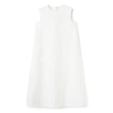 ミニマルなシルエットに、リボンの様にデザインされたカットジャガード生地が映えるワンピース。