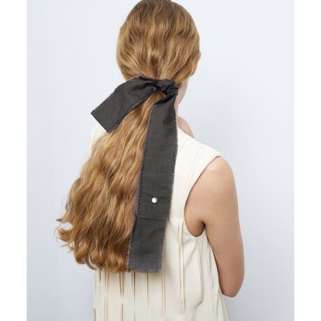 長めに垂れるリボンが大人のモードテイストです。