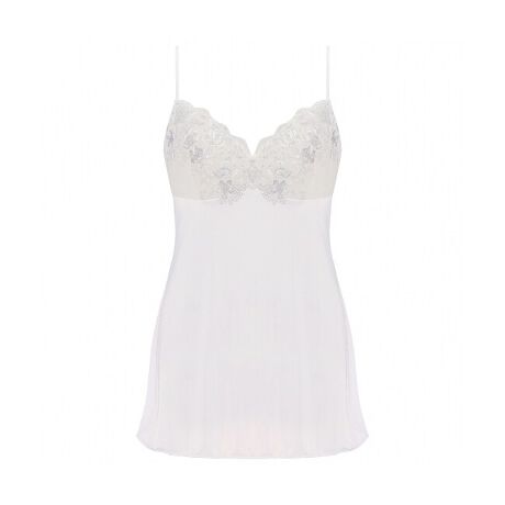 月の女神の恋心に呼応して夜露を輝かせて咲く、艶やかな花々を表現。夜露のきらめきにはラメ糸使いのプリントエンブレース(プリントした刺しゅうレース)と、星座をなぞったようなアップリケを組み合わせたレースです。