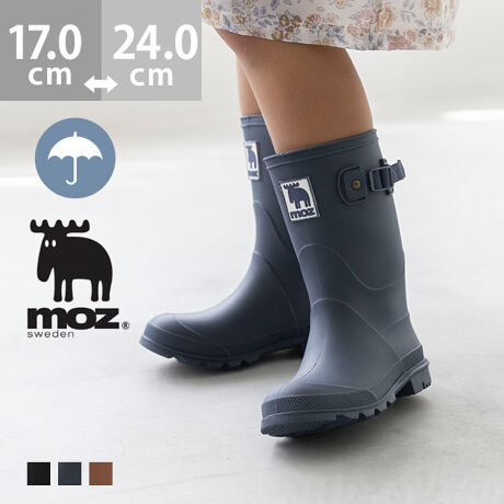 シンプルなデザインに、ヘラジカ「エルク」のロゴがワンポイントで可愛いブランドmozのレインブーツ。