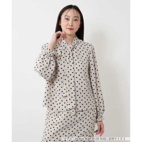 流れるようなボウタイデザインが魅力の、エレガントなドットプリントブラウス。
