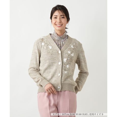 フロントにあしらわれたフラワー刺繍が、フェミニンなエッセンスを添えるVネックカーディガン。シンプルながらも存在感のある一枚に仕上げました。ネックのすっきりとしたデザインが顔周りをシャープに見せつつ、絶妙な抜け感をプラス。丈感も計算されており、カジュアルなパンツにもフェミニンなスカートにもバランスよく馴染むシルエットもポイント。デイリーにはもちろん、ちょっとしたお出かけやオフィスシーンでも活躍する、着回し力の高いトップスです。