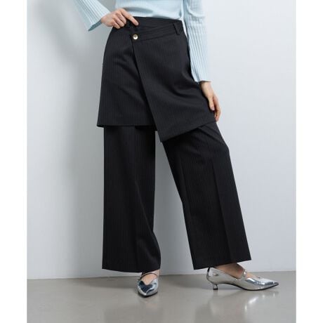 パンツにラップスカーレイヤードしたトレンドライクなデザインのパンツ。