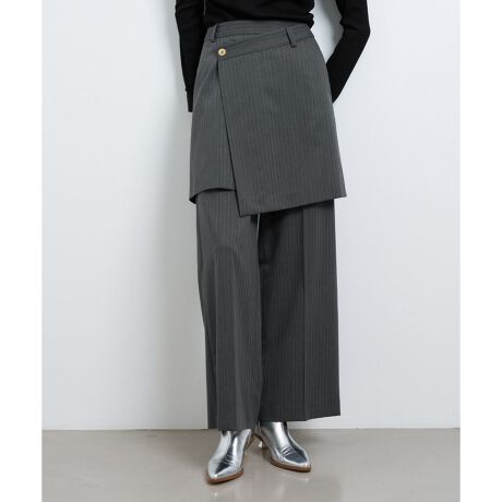 パンツにラップスカーレイヤードしたトレンドライクなデザインのパンツ。