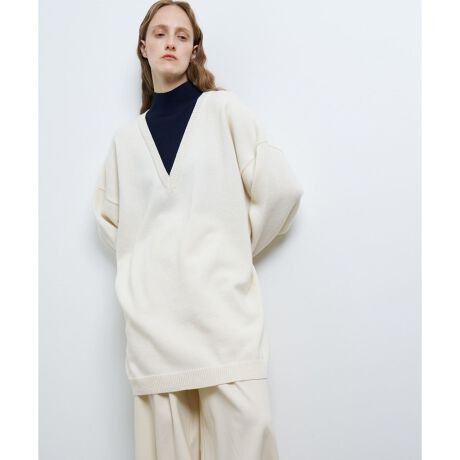 短めのチュニック丈が今季のムードを感じさせながら、ハイネックとコクーンシルエットでモードな印象をプラス。
