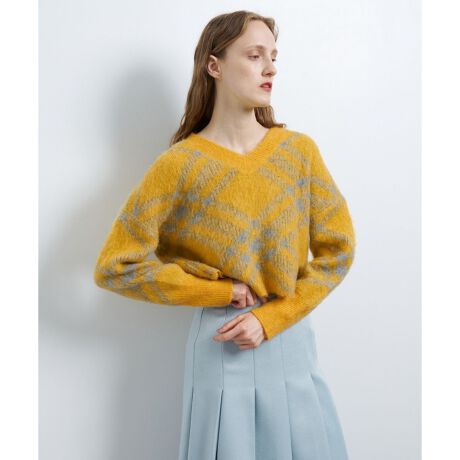 鮮やかカラーとビッグチェック柄が魅力のジャカードニット