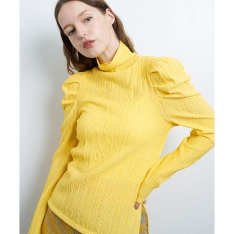 ランダムタックのパフスリーブは、より陰影のある立体感が生まれ目を惹くポイントになっており、インナー使いはもちろん羽織らずに1枚着でも楽しめます。