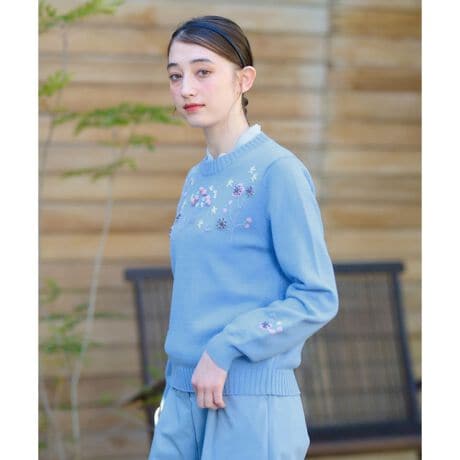 花や葉のモチーフなど、フロント部分に施された刺繍が上品で華やかなデザインニット。袖口にもさりげなく刺繍が施されており、細部までこだわりを感じるデザインです。柔らかく暖かい素材感で、寒い季節にも快適に着用可能。シャツやブラウスとのレイヤードスタイルで、カジュアルにもフェミニンにも合わせやすいアイテムです。パンツにもスカートとも相性が良く、幅広いコーディネートが楽しめます。