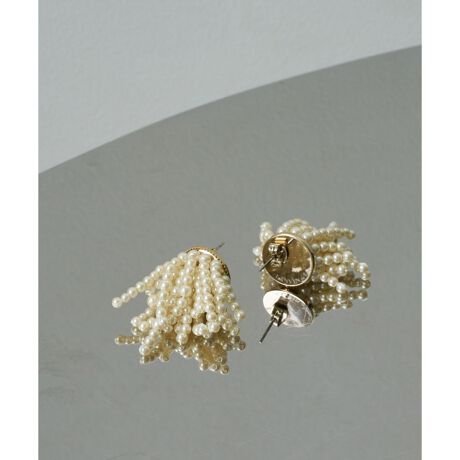 シャワーが降り注ぐように大小ランダムなパールが連なったピアス。