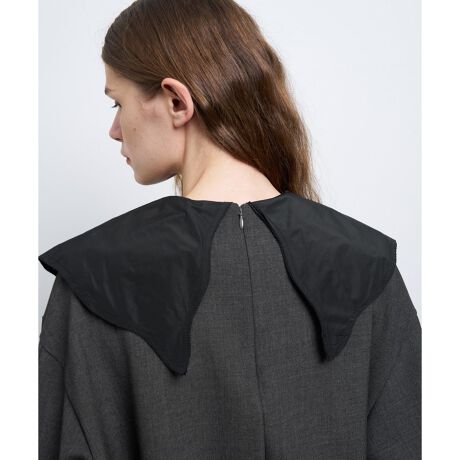 異素材タフタの襟は、ゆるやかなカーブラインに繊細なピコカット始末で印象的に仕上げました。