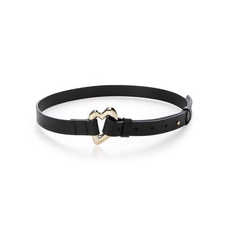 LANVINならではのアシンメトリーな欠けたハートモチーフをバックルにしたベルト。