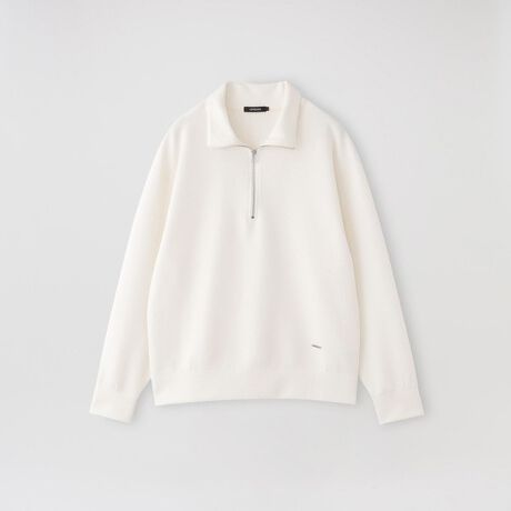 シボ感のある表情豊かな素材を使用したハーフジップトップス