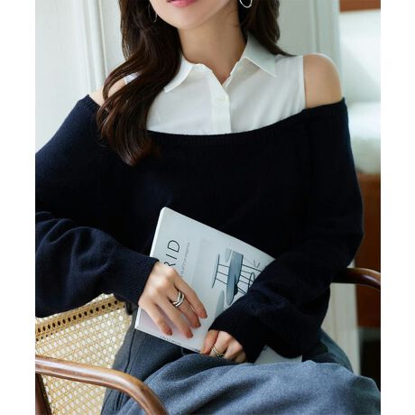 端正なイメージのシャツとゆるニットのコントラストが目を惹く一枚です◎