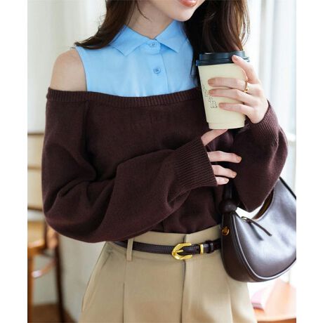 端正なイメージのシャツとゆるニットのコントラストが目を惹く一枚です◎