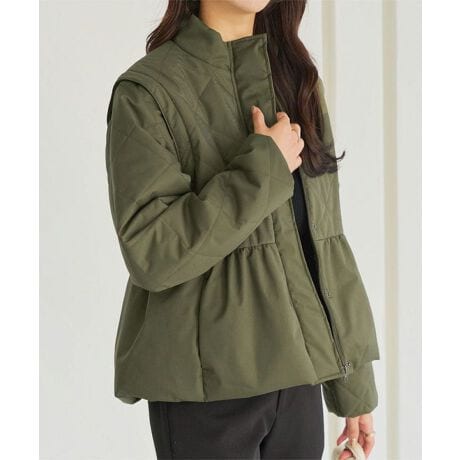 ふんわりとしたペプラムシルエット×キルティングで立体感のあるアウター。