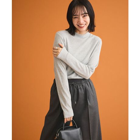 キラキラ輝くラメ入りの素材で仕立てたプルオーバー。締め付けすぎない優しいフィット感のハイネックで暖かく、すっきりと小顔効果も演出します。伸縮性に優れた快適な着心地も魅力。1枚でヘルシーに着こなすのはもちろん、トレンドのビスチェを合わせたレイヤードスタイルにも活躍する汎用性の高いアイテムです。透け感[ややあり]