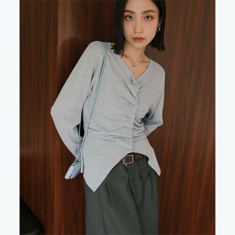 フロントギャザーボタンニット