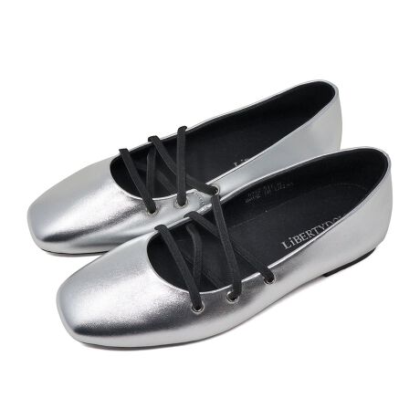 メタリック/フラット/軽量/入学式/デイリー/メタリックカラー/シルバーパンプス/キラキラ/入園式/バレエコア/ソックス合わせ/レースアップ/ストラップ