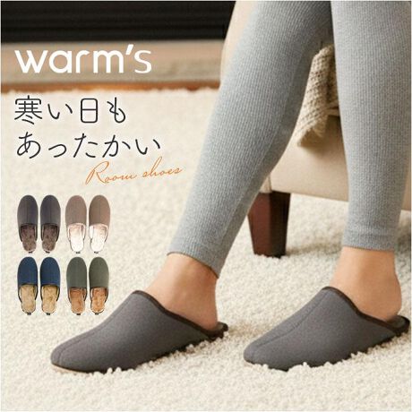 【ふんわり暖かく、足元にくつろぎを】寒い日の足元に寄り添う、上質な履き心地のスリッパ「warms」。【ファー素材で足元ぽかぽか】内側のファー素材が足を包み込み、寒い日でも快適に過ごせる履き心地◎【パタパタ音がしにくい底面加工】フローリングの床でも滑りにくく、静音効果のあるポリエステルスエードに滑り止め付きの底で安心。【つま先上がりで歩きやすい】小さな段差でもつまづきにくい♪スリッパ先端には、歩きやすい「つま先上がり形状」を採用。【しっかりとしたフォルム】靴の製法を取り入れて仕上げた、しっかりとしたフォルム。階段の踏み込み板にぶつかっても衝撃からガード。【男女兼用のシンプル設計】無地でスッキリとしたデザインが男性女性問わず幅広い年齢層にマッチ♪