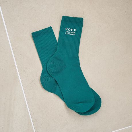 coenのブランドロゴ刺繍がアクセントになった、シンプルで履きやすいリブソックス。