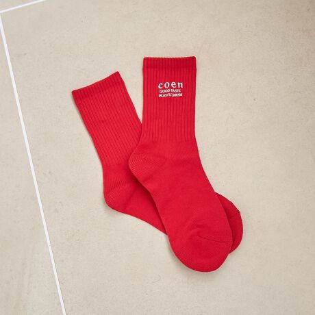 coenのブランドロゴ刺繍がアクセントになった、シンプルで履きやすいリブソックス。